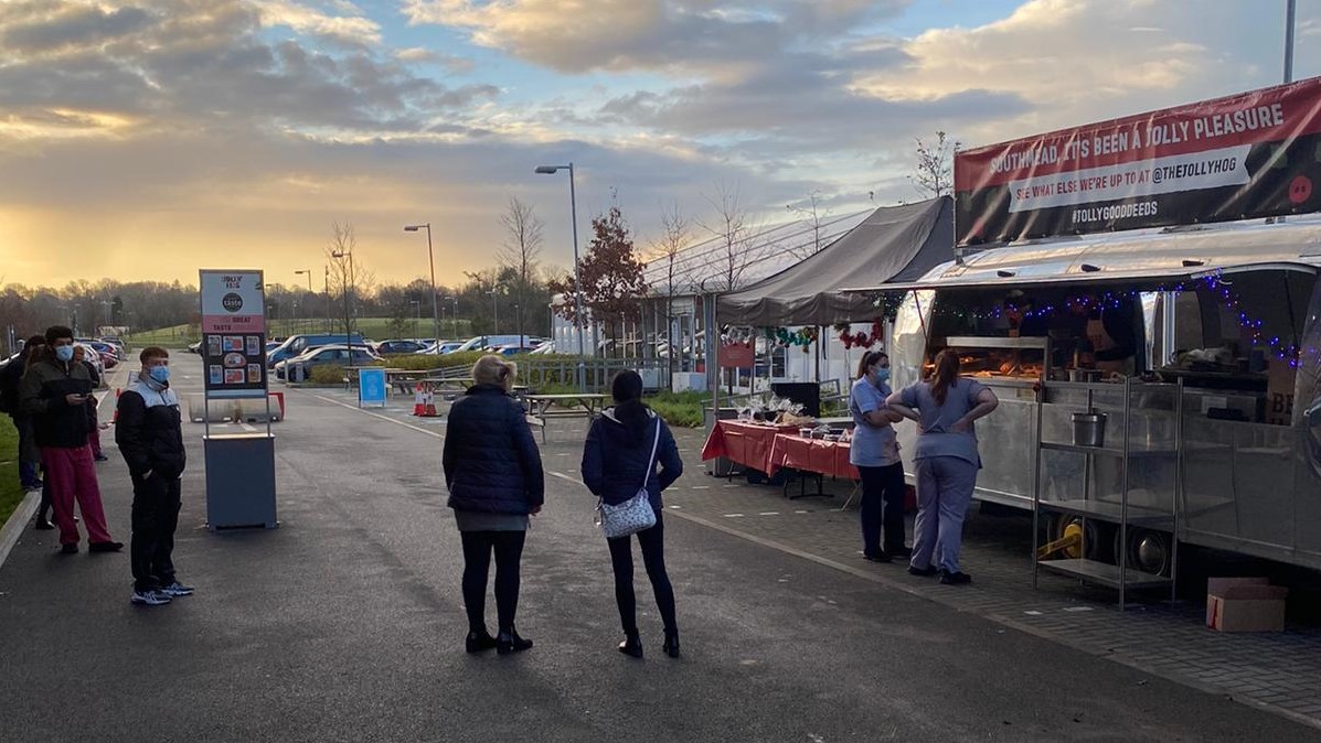 All this week, as Covid-19 vaccinations begin to be administered at Southmead, the team’s Airstream food van will be serving staff a pulled gammon bun with stuffing, cranberry and a pig in blanket; or a brie, cranberry and stuffing bun for vegetarians.