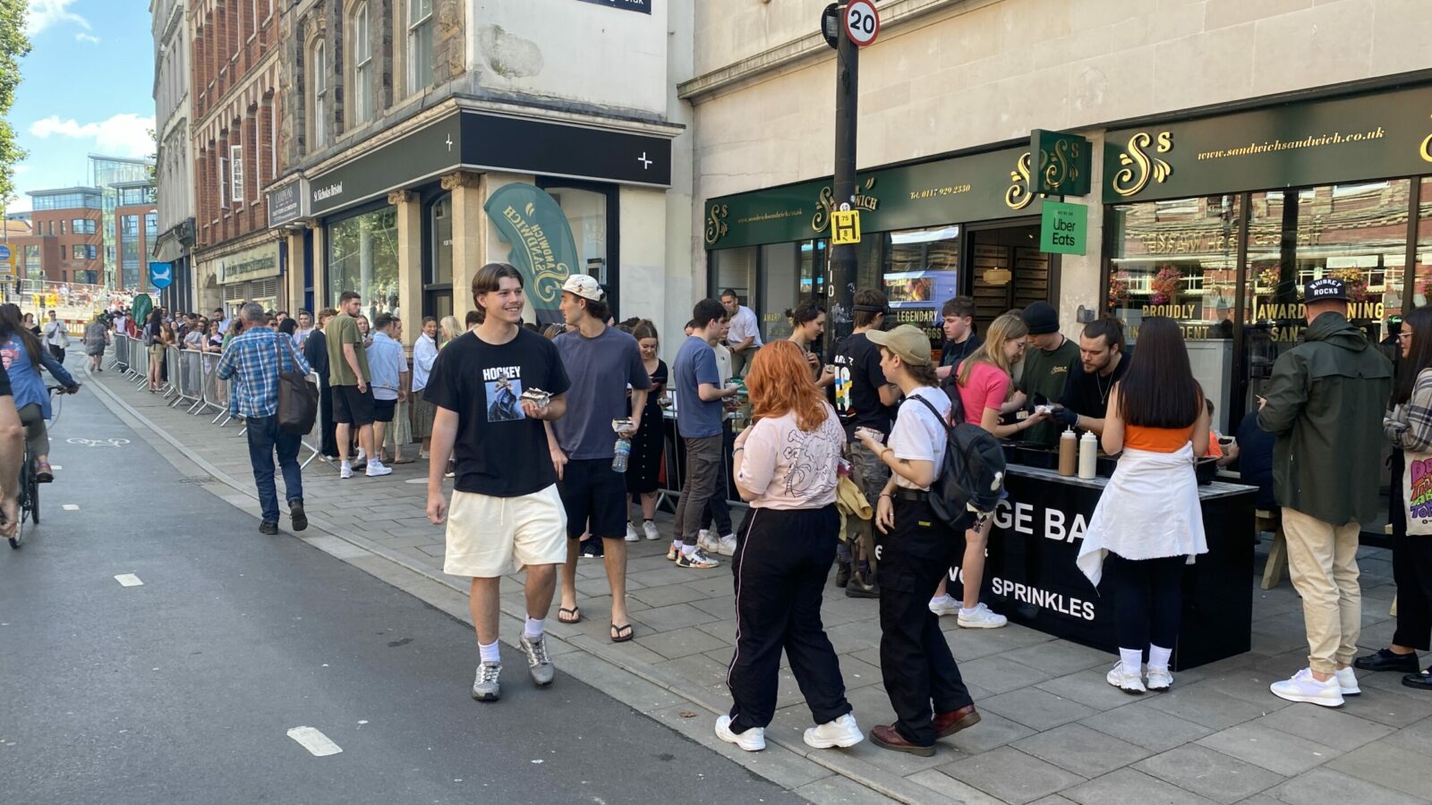 A queue had already formed at 11am in the morning, and by 12pm, stretched from Sandwich Sandwich on Baldwin Street, all the way down Welsh Back and to the Hole in the Wall pub near Queen Square.