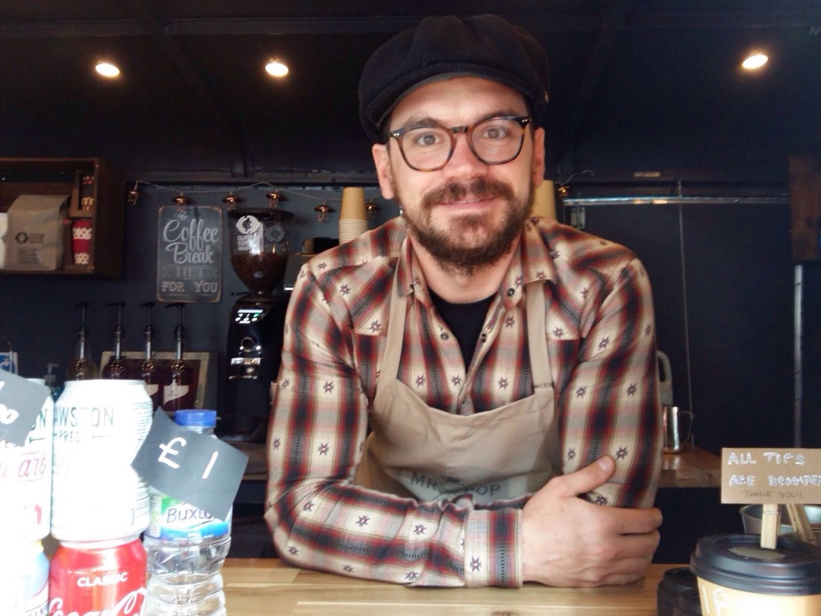 Thirty-year-old Florin learned how to make good coffee while volunteering in the cafe that his church in Aztec West helps to run, and his friends from the church helped tidy the ground around Mr Pop and cut back the foliage before he opened for business on Monday.