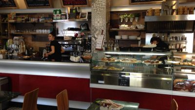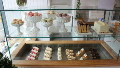 The cafe sells all sorts of sweet treats, to take away and eat in all day and evening