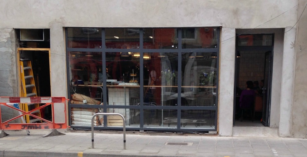 The bakery area here can be glimpsed in the back of this unit that most recently was NatWest bank. Tins, bowls and trays balanced on top of each other signify that the morning’s hard work is already completed.