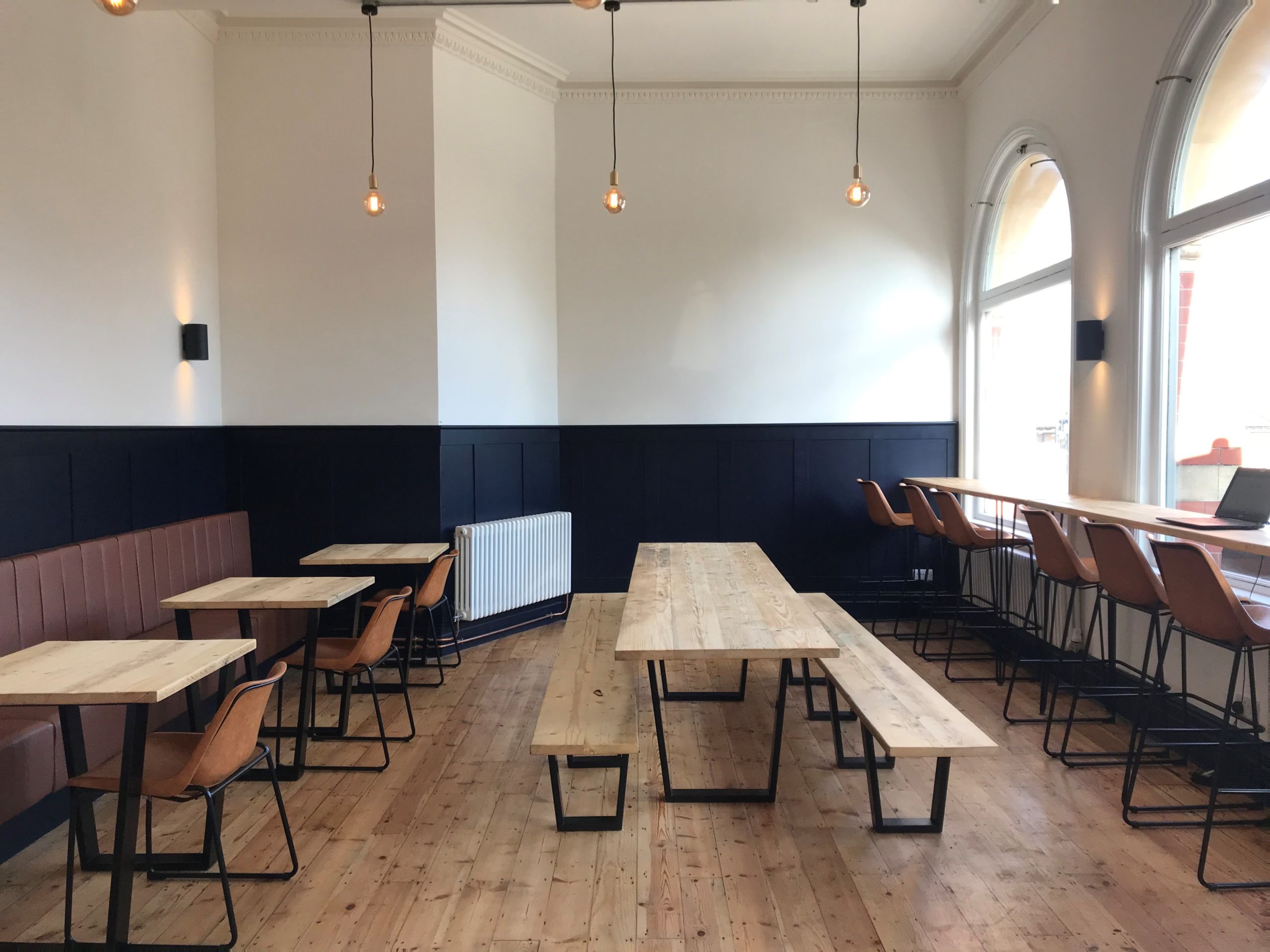 Three huge windows flood the high-ceilinged building – which was most recently Banco Lounge and originally a Lloyds bank – with natural light.