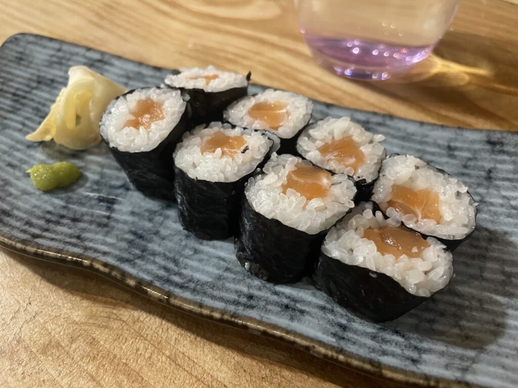 Ordering is done via a QR code, with menu items including maki, nigiri and Japanese fried chicken.
