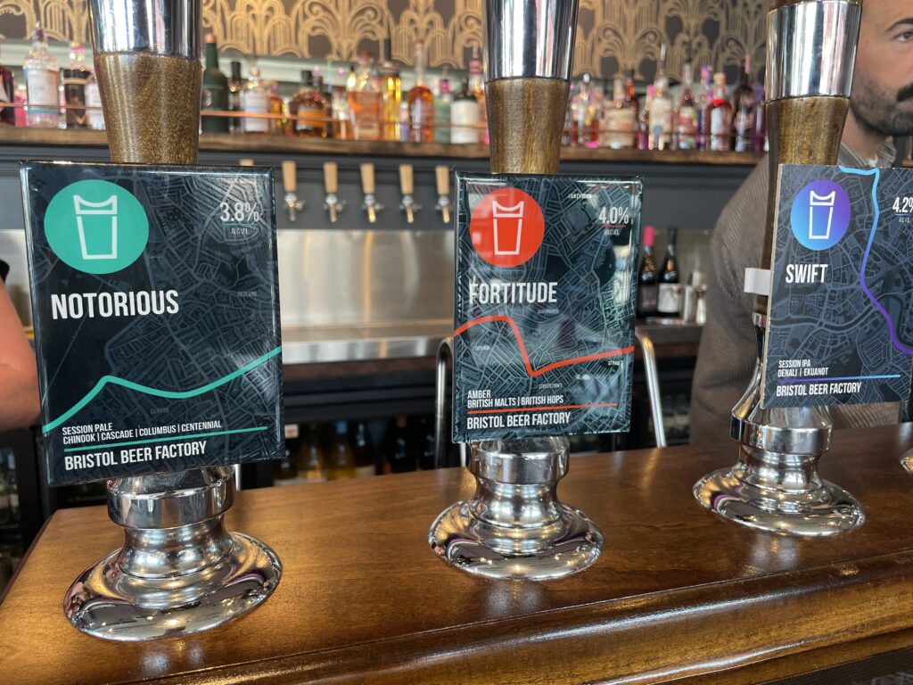 Cask beers from Bristol Beer Factory are among the beer options on tap