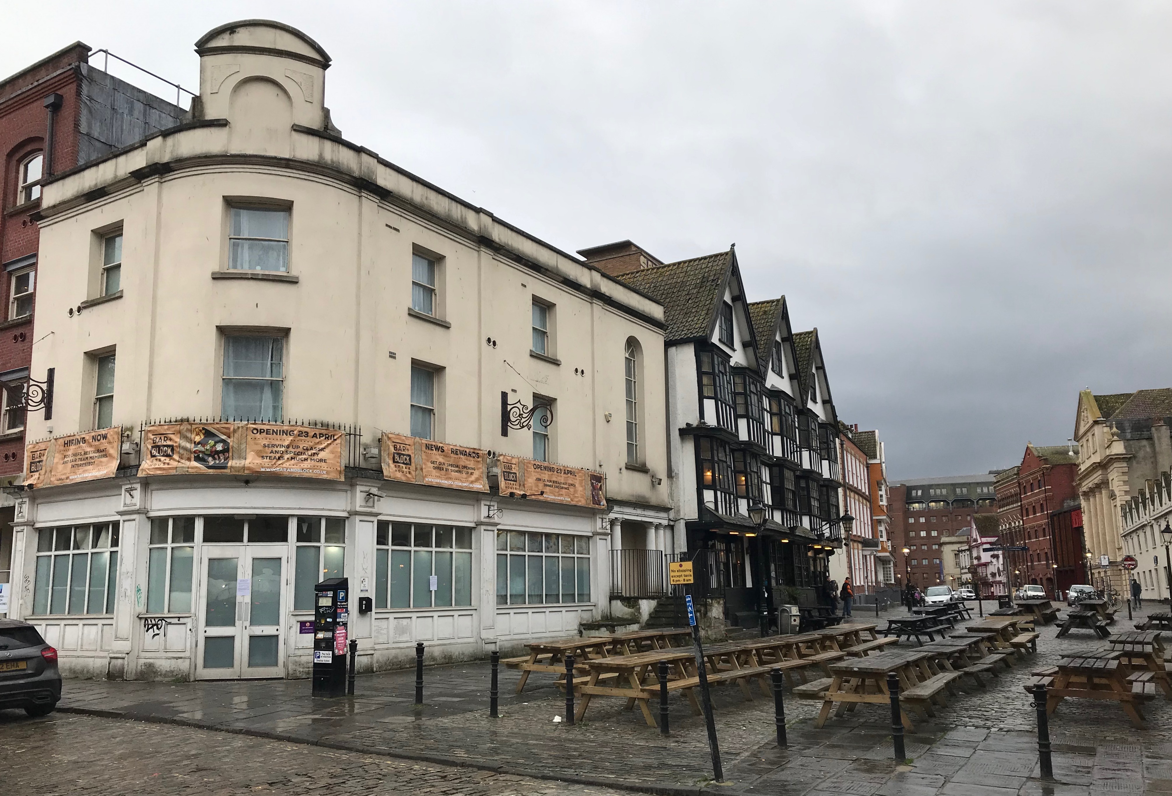 Bristol’s Bar+Block is due to open on April 23 on the corner of King Street and Welsh Back, on the site of what was originally two of the original five projecting gables of the Llandoger Trow. which were destroyed in the Second World War.