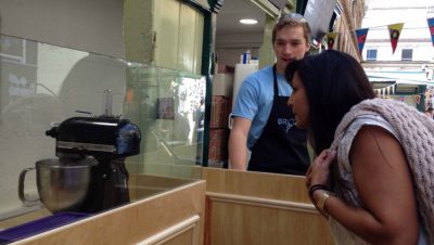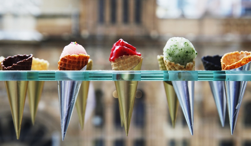 Bubblegum flavour was also turning one six-year-old girl’s tongue blue on Sunday morning, as in a small room glimpsed through a pane of glass, ice cream maker David was creating even more new concoctions.
