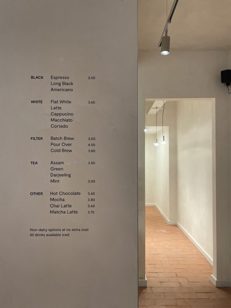 If it’s black you’re after, it’s £3 for an espresso, long black or americano; if you prefer your drink with milk it’s £3.60 for a flat white, latte or cortado; or from the filter options, choose a batch brew for £3, cold brew for £3.80 or pour-over for £4.50.