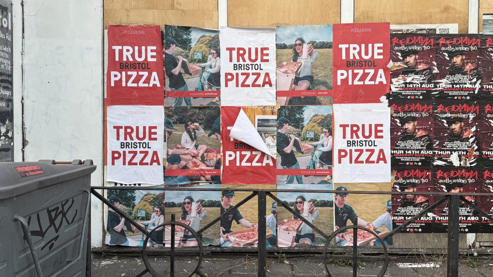 While Rudy’s posters promise ‘true Neapolitan pizza’, Pizzarova pride themselves on ‘true Bristol pizza’ on their own posters.