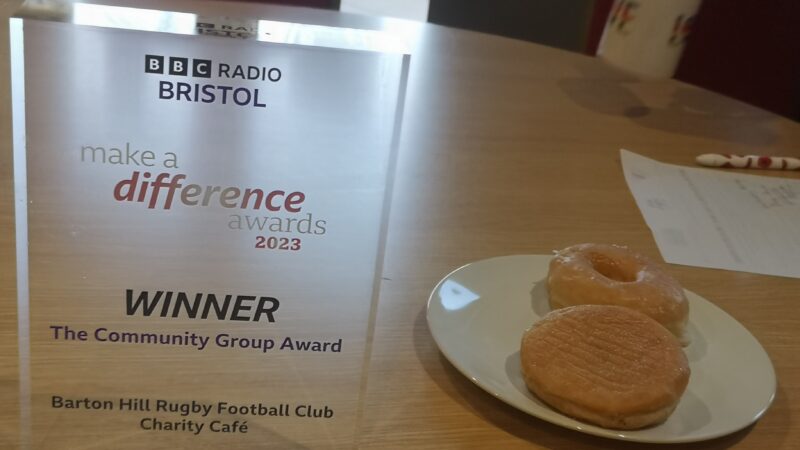 The Barton Hill Rugby Football Club Charity Cafe, which opens its doors twice a week, has recently been honoured with the prestigious BBC Radio Bristol Make A Difference Community Group Award for its dedication to community welfare.