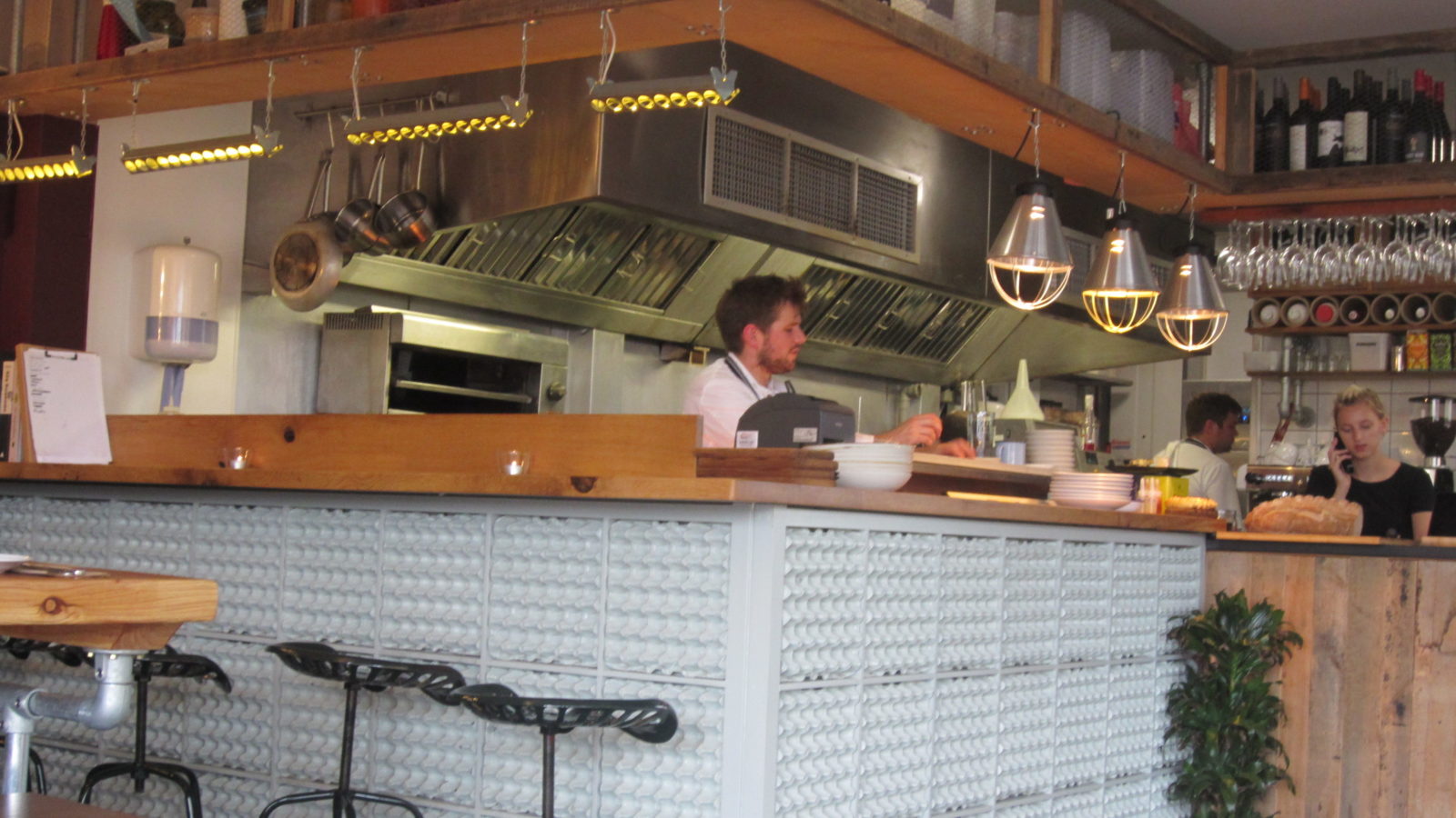 The clientele was varied on this Thursday lunchtime, from couples enjoying a leisurely meal with wine, to families making a pit stop, while the chefs – visible behind the chicken wire that is presumably a throwback to its past incarnation – worked their magic in a small, but clearly capable, kitchen.