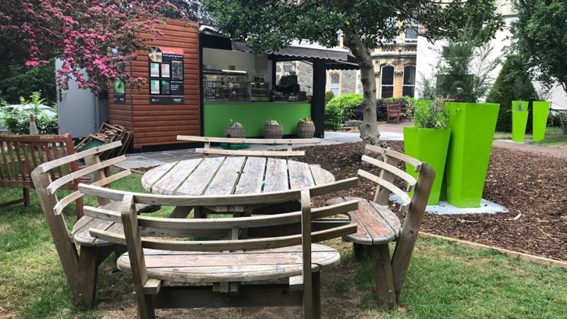 A converted shipping container has opened as a cafe in gardens owned by the University of Bristol.