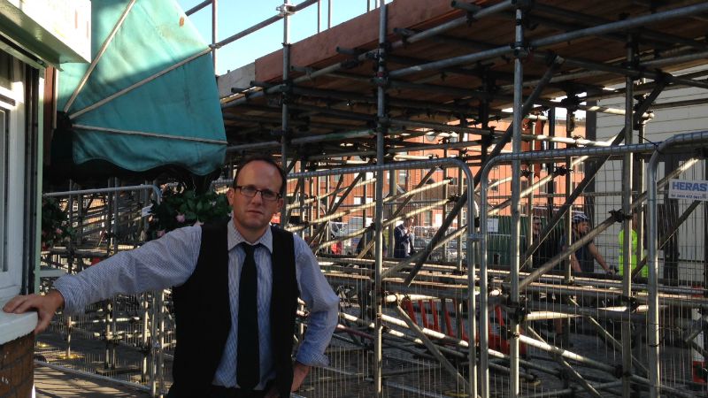 When work on a new temporary overhead pedestrian walkway is finished, potential customers who once walked by the cafe’s front door will be looking down on its roof. Work on the bridge is due to be completed by April next year.
