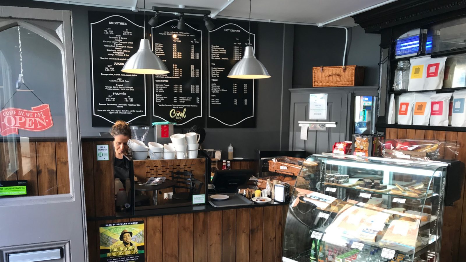 Coral Cafe currently just uses the front room of the former pub with the back room still being refurbished. It seats three people on stools in the window and also has space for a couple of small tables.