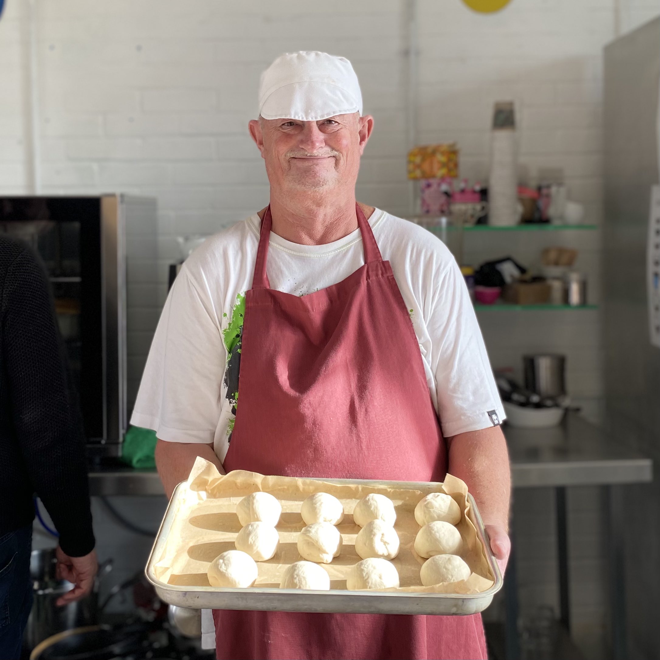 Knowle resident Pat Chant runs men’s baking group Rising High at the Health Association – photo: Charlie Watts