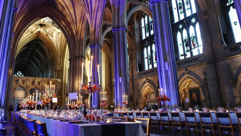 The nave of Bristol Cathedral has hosted a unique evening of fine dining and choral music. The black-tie gala dinner, which cost £95 per seat, with all the money raised going to the upkeep and refurbishment of the cathedral over the next decade.