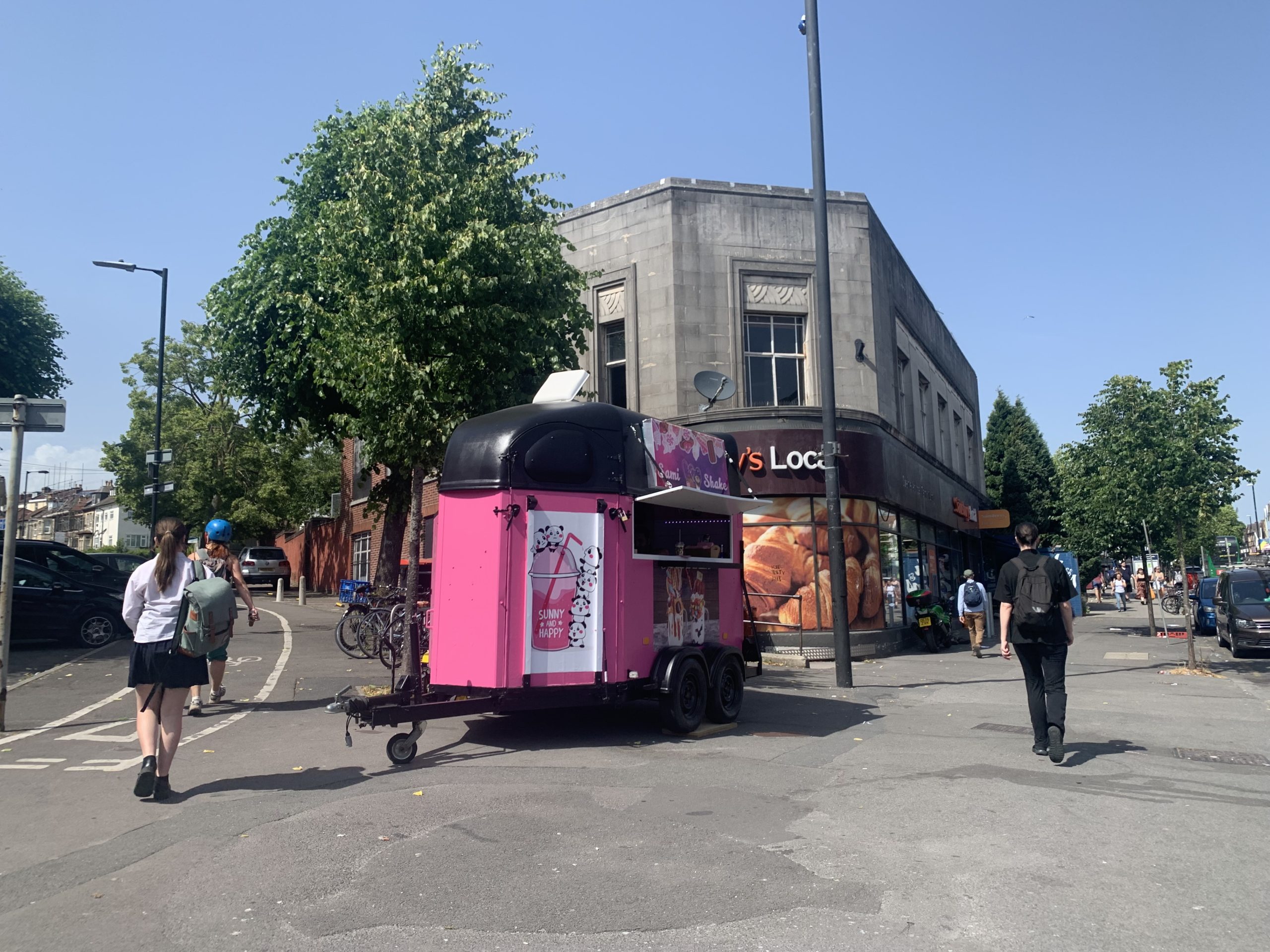 The converted horse box is currently stationed outside Sainsbury’s on Gloucester Road