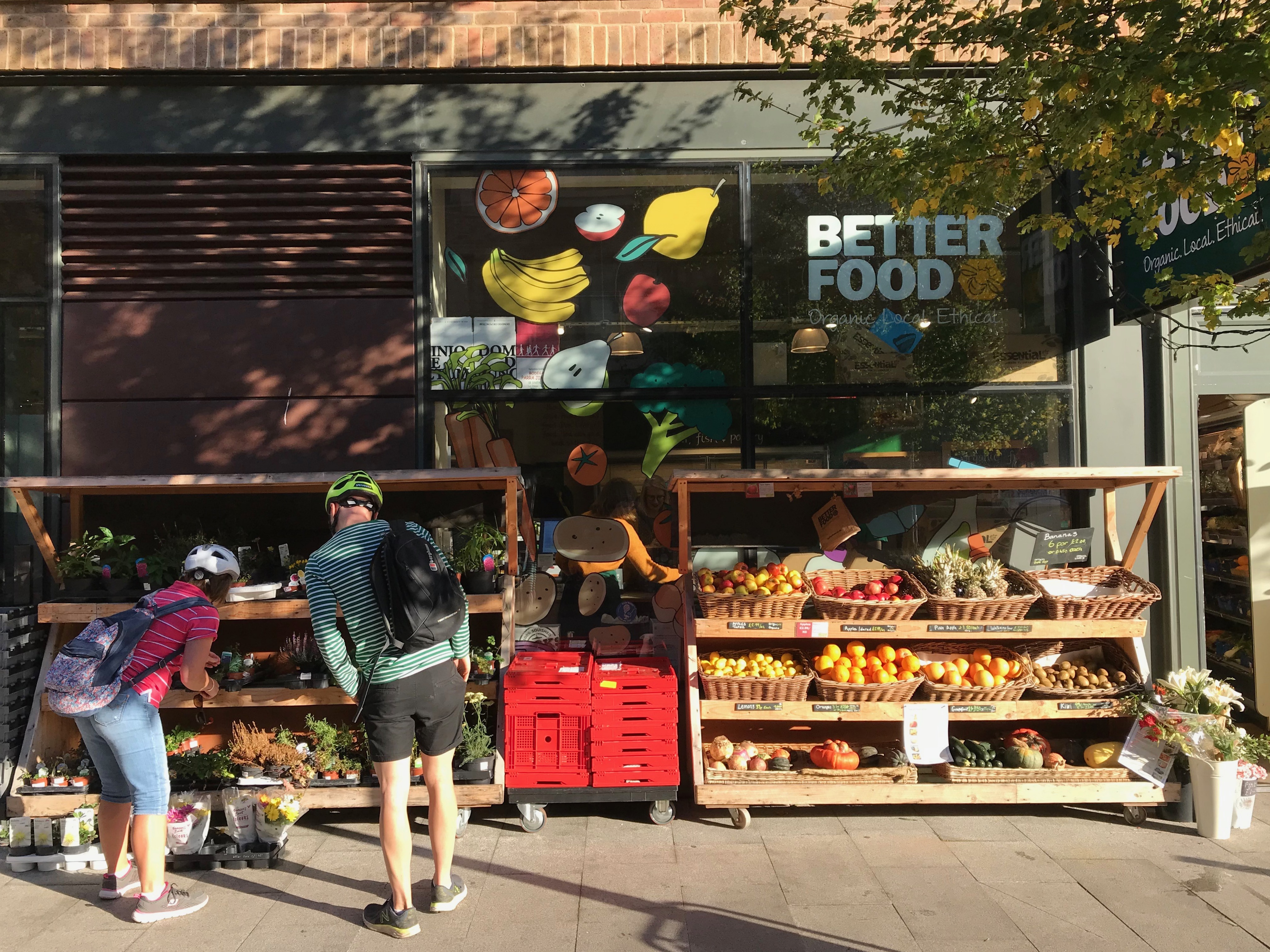 Better Food was described as a “mini organic-grocery and cafe chain that has spread to three branches across Bristol since first opening in 2002. Lots of produce from the community farm just outside the city started by the shop 10 years ago.”