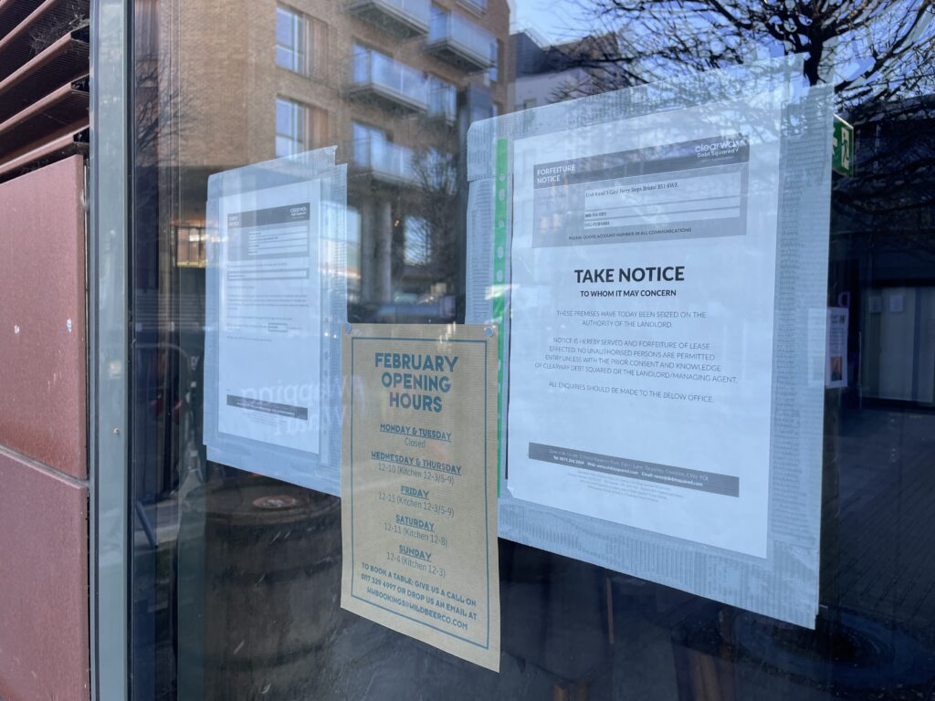 Repossession notices appear either side of the bar’s February opening hours – photo: Martin Booth