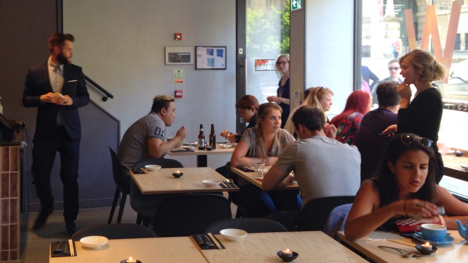 The dining room at Woky Ko on Queen’s Road overlooks the Wills Memorial Building and Bristol Museum
