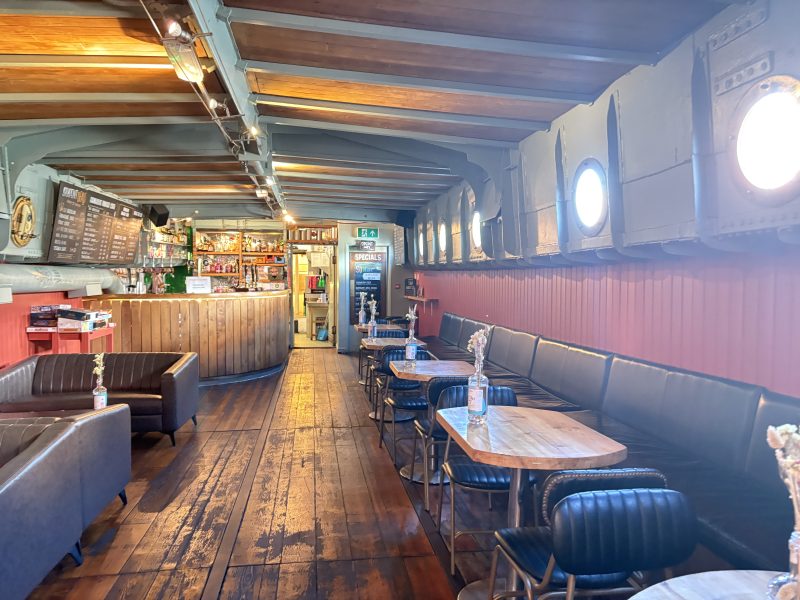 Portholes dominated both sides of the barge’s basement that was also the pub’s main bar area