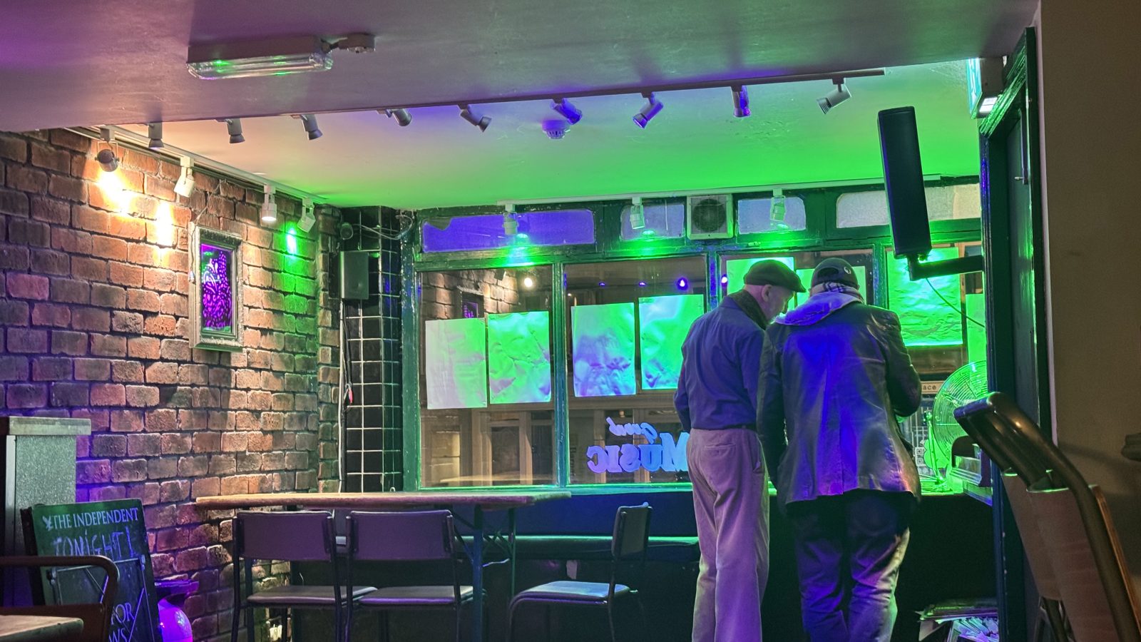 Three quarters of an hour pass before any one else enters the pub. A pair of friends make a beeline straight to the bar. One digs through his bag for finding what he’s looking for, “my eyes,” he says.