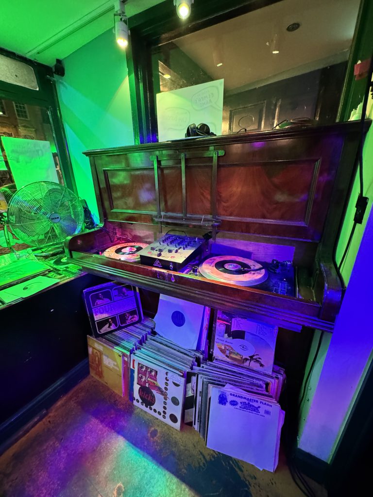 Vinyls aside, the place is filled with vintage accents and accessories. From the 1961 broken juke box pushed into the corner, the lit Piccadilly sign that reads ‘Britain’s finest cigarettes,’ to the more subtle emerald tiled bar and unpolished brick walls.