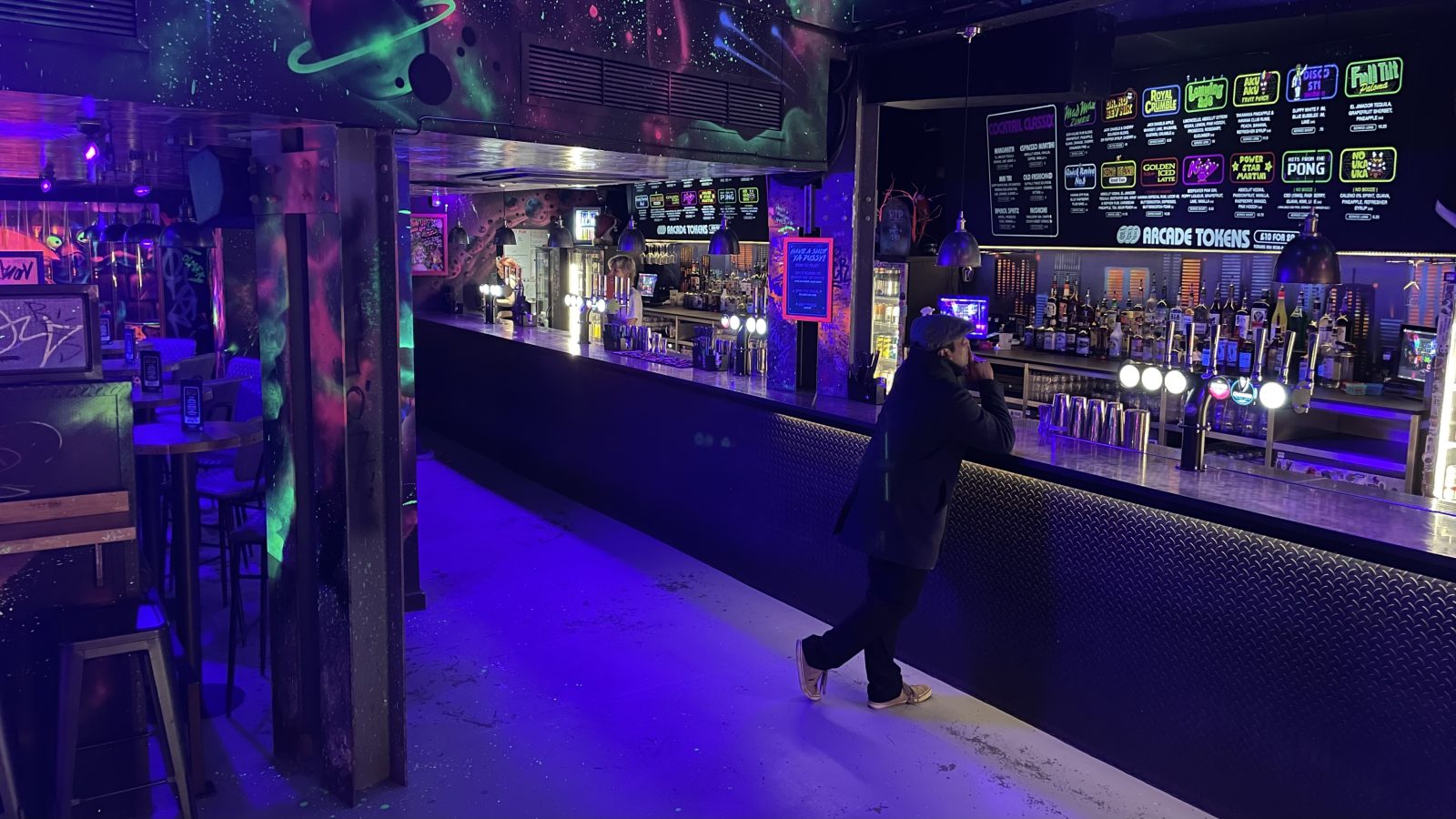 ‘Drinks off machines, dickheads’ is another of the rules with 20 tokens available to buy from the bar for £10 to spend on the machines inside.