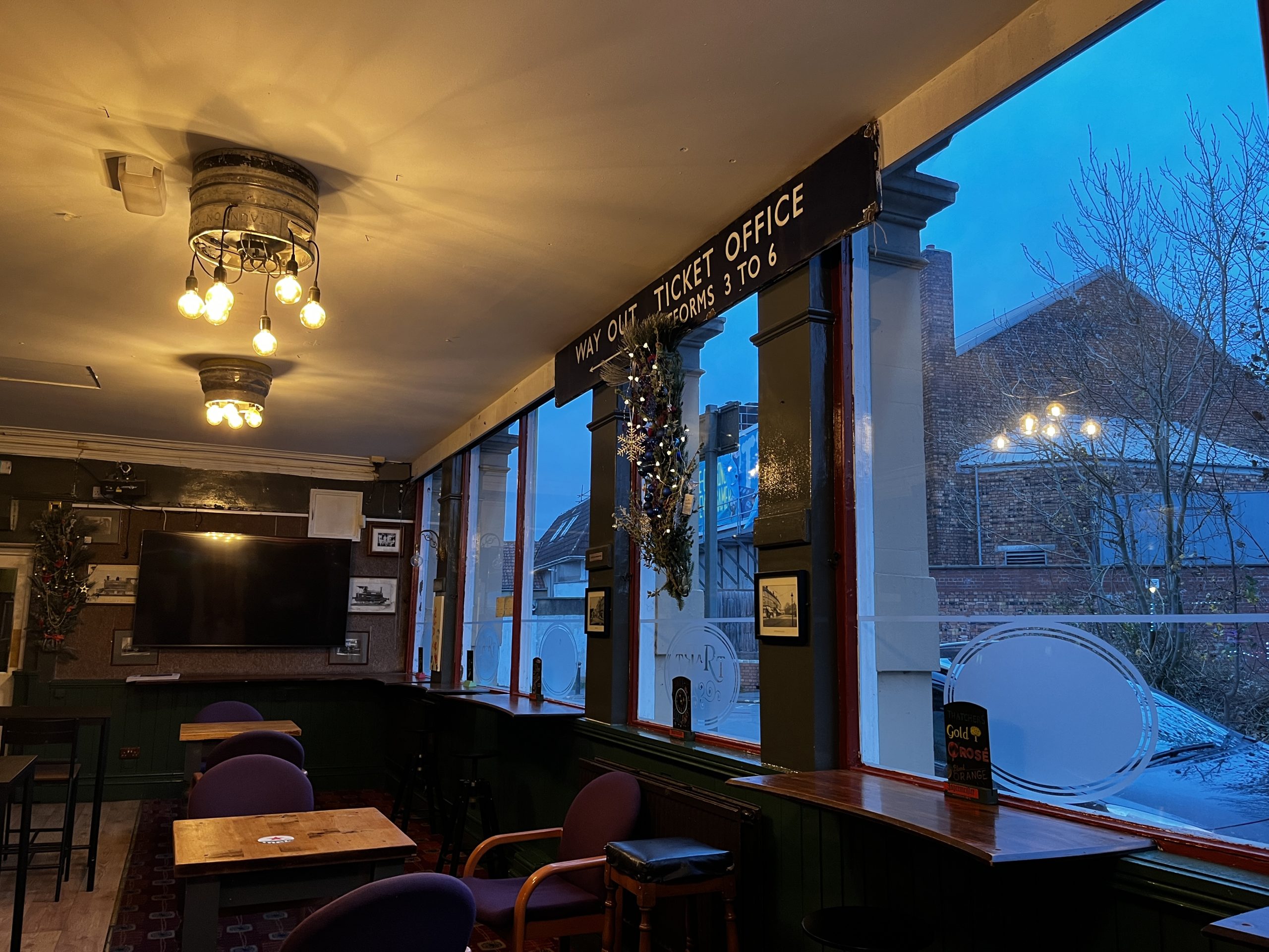 Throughout the pub are little things to make one feel they are in a railway station including platform signage and directions to the ticket office.