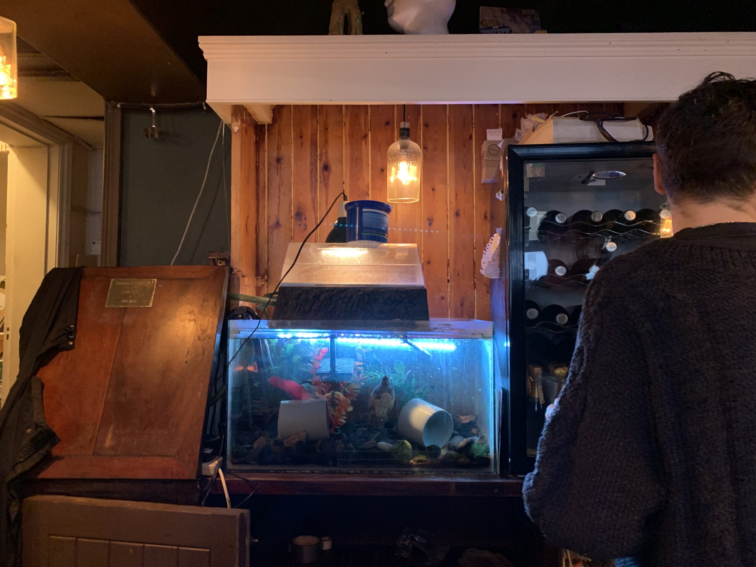 The bar boasts a wonderful selection of local brews like Lost and Grounded’s ‘Keller Pills’, Bristol Beer Factory’s ‘Infinity’ and St Austel’s ‘Southville Session’ lager, as well as a lively house terrapin, which occupies a fish tank at the back of the bar.