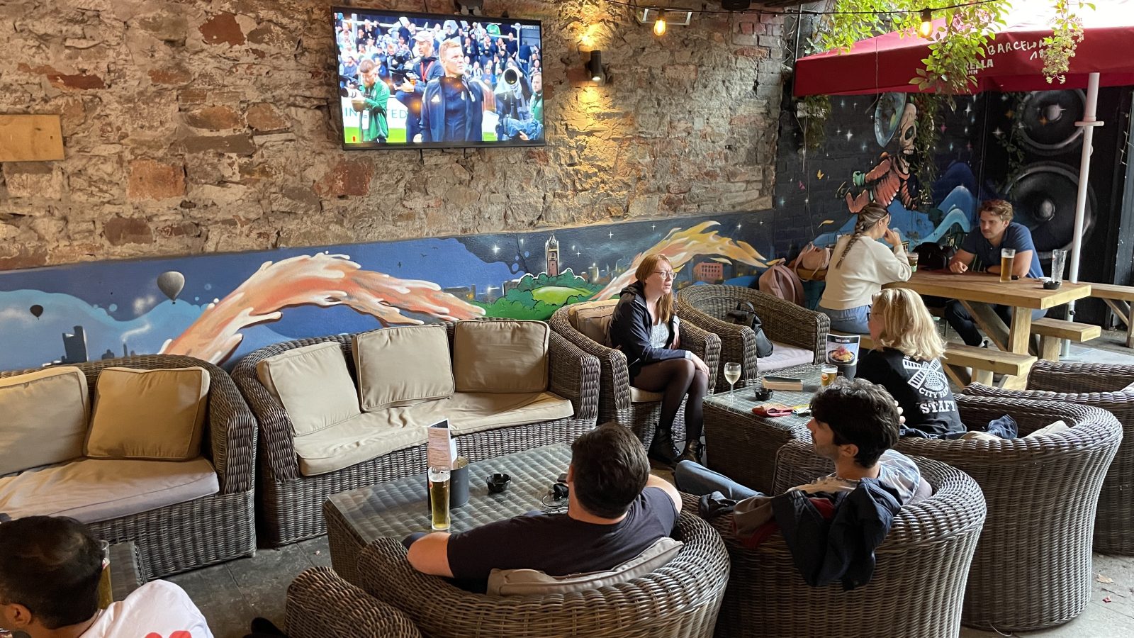 Around the back, the hum of the football is playing on multiple televisions, which is often punctuated by a table of two women periodically dissolving into giggles as they wave their vapes around.