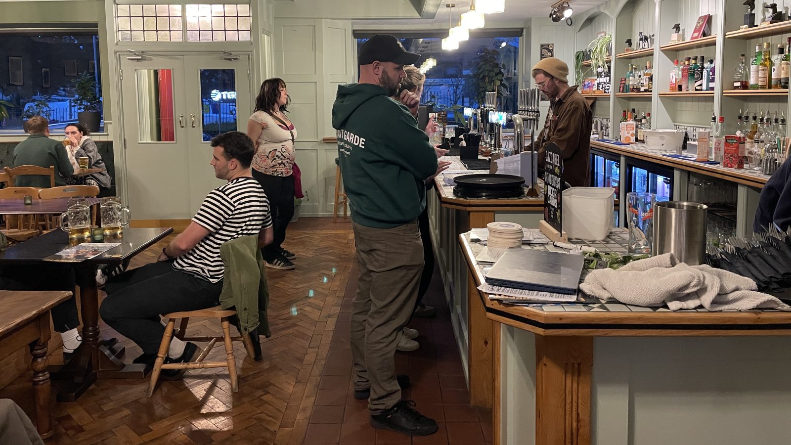 It’s early evening on a recent weekday, and people are enjoying post-work pints and burgers in the Greyhound in Fishponds, where conversation is in full flow and a cluster of a dozen or so punters jostle at the bar to get their order in.