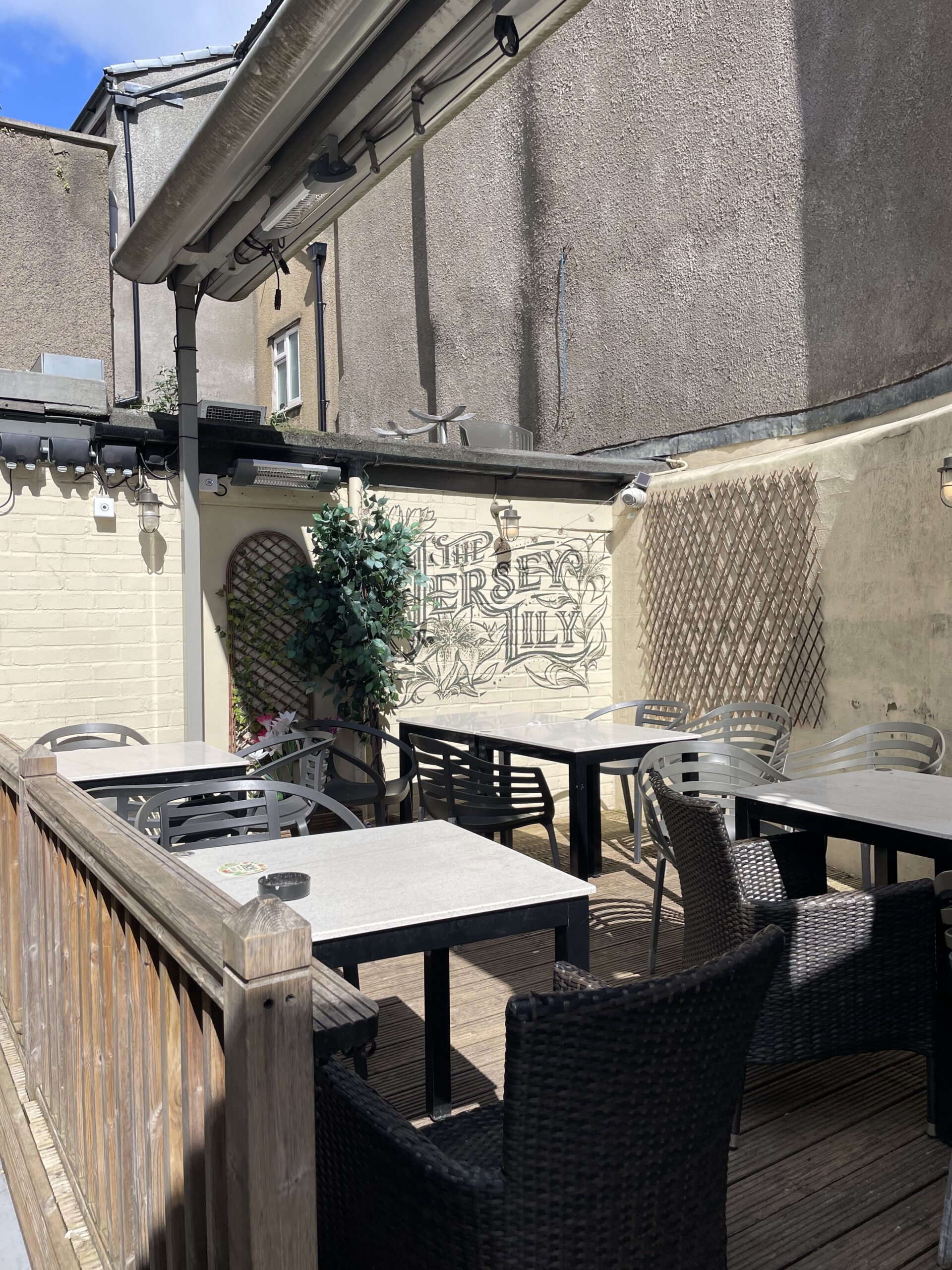 A small beer garden lay empty round the corner of the front entrance