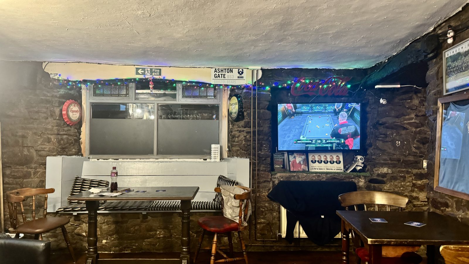 There must be only five or six people in here who’ve bared the downpour for a refreshment from their local, and everything about this place screams ‘cheers drive’, with all its Bristol-centric merchandise, including an Ashton Gate sign on the wall.