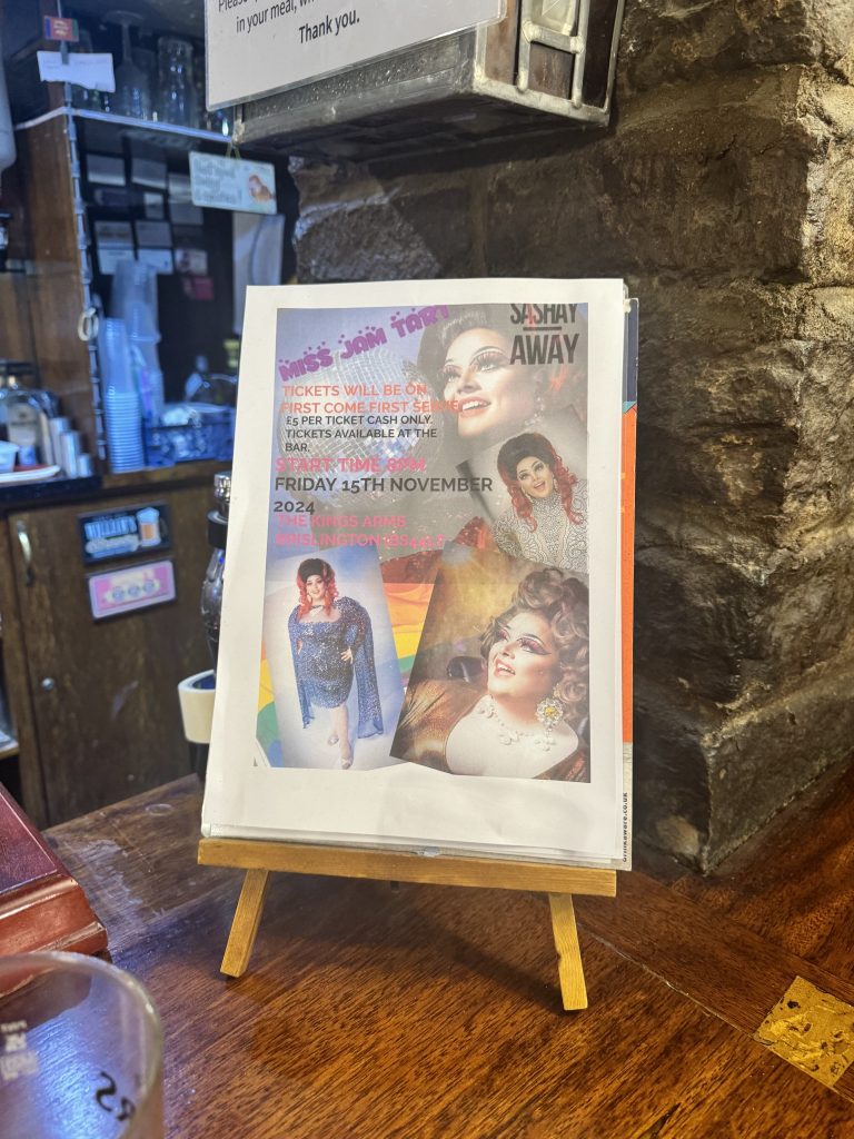 There are a number of posters advertising karaoke, live football matches and Miss Jam Tart, a drag artist who is doing the rounds of a couple of Bristol establishments.