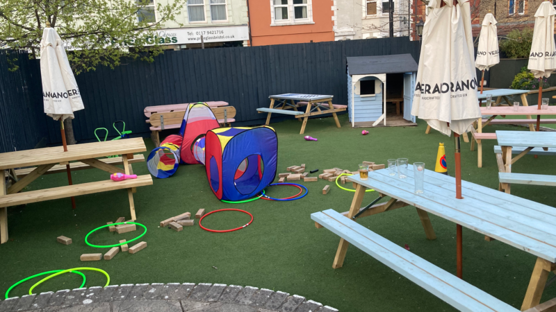There was even a children’s play area fully equipped with a playhouse and one of those polyester play tunnels which, at the time, was being beaten to a pulp by a four year old wielding two brightly coloured bowling skittles.