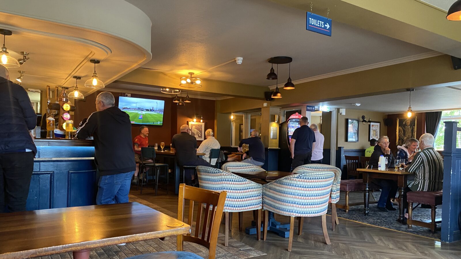 A man with a voice that carries says how on Saturday night, the pub was so rammed, he had to put his chair in a certain position to stop more people from coming in.