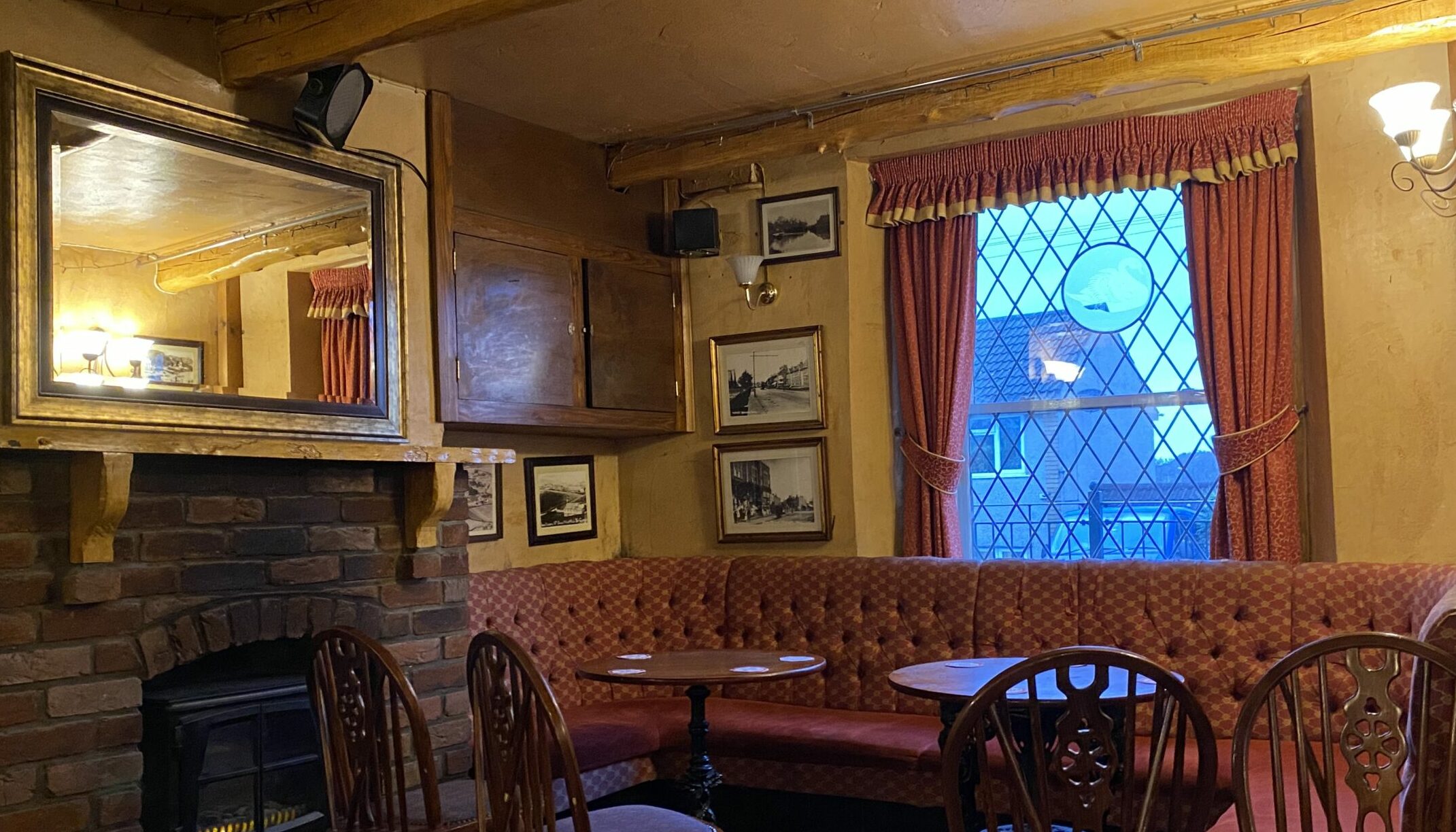 There’s a chalk board with scores of a game propped up by the bar, behind which just one cheese roll remains. The traditional interior of the pub boasts framed Beryl Cook pictures, among others, hung beneath the vast wooden beams.