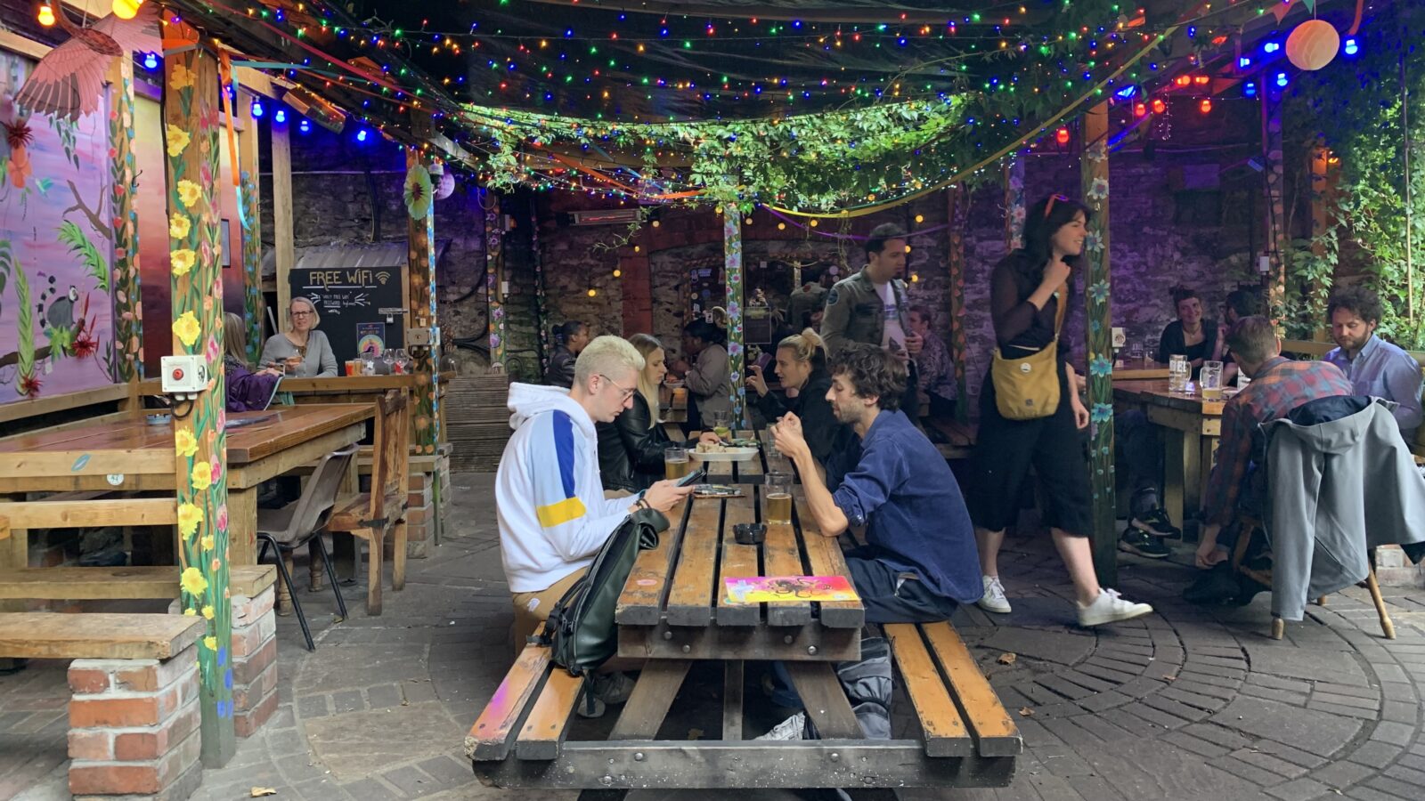 They can choose from tables in a partially outdoor courtyard, covered by drapes of fairy lights, with colourful ceilings and cosy nooks that are flooded with a warm glow from outdoor heaters in the winter months.