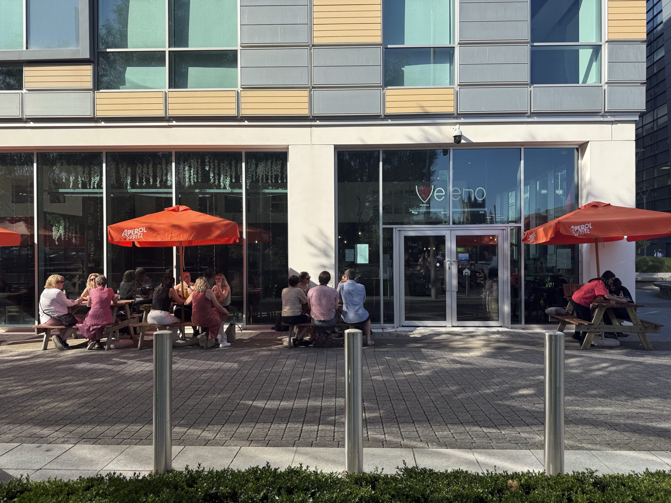It is only the huddles of people underneath the orange Aperol-branded umbrellas, basking in the Thursday afternoon sunshine, that makes you aware of its purpose in Glass Wharf.