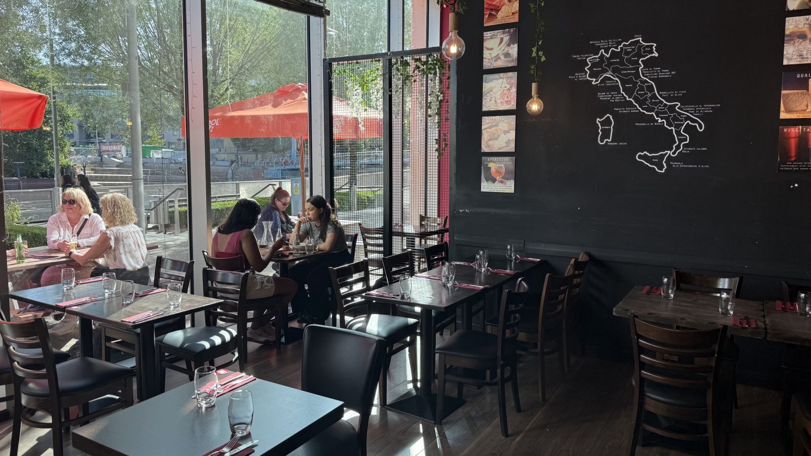 For anyone perplexed by the multitude of choices on their menu, a wall at the back, adorned with a map of Italy and its 20 regions, labels speciality productions of each area – allowing people to make an informed and conscious choice.