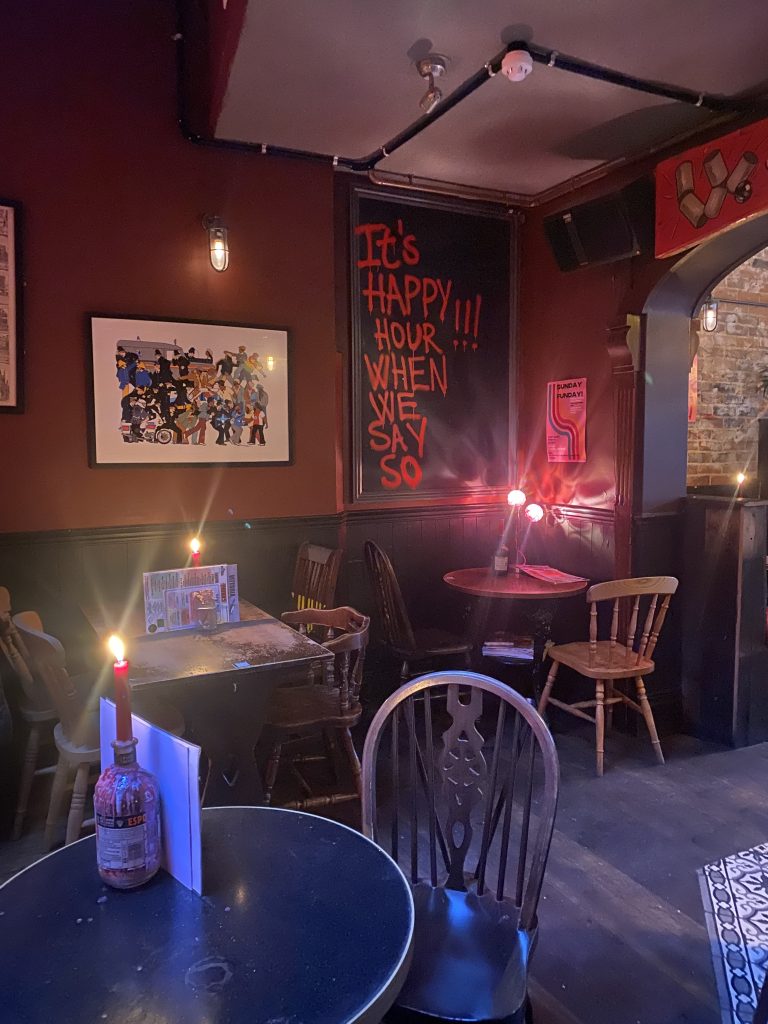 Funky posters on the walls are a defining feature of the pub – photo: Yoyi Clark