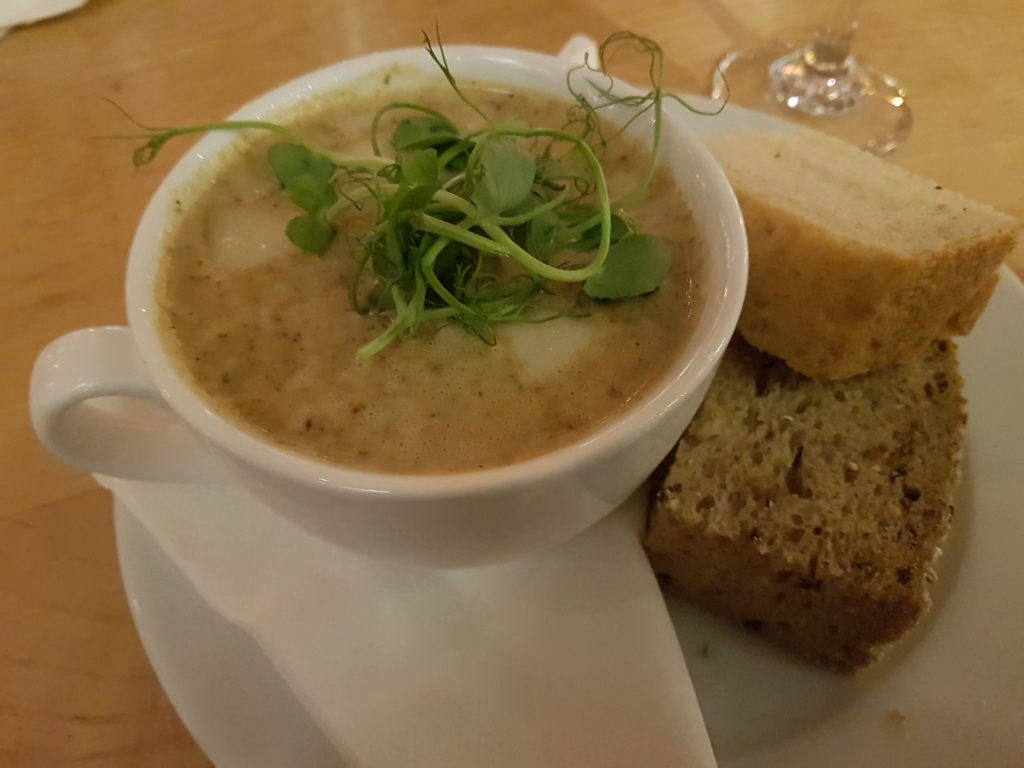 The Tobacco Factory uses Mark’s Bread from the award-winning bakery just across the road – among many other local suppliers – and it proves a winning choice as a large mug of mushroom soup arrives with three deliciously satisfying chunks of bread.