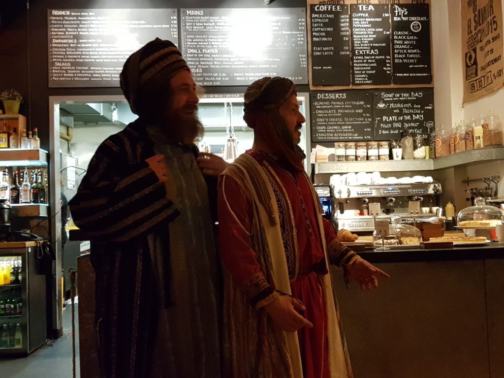 “Have you seen a camel?” says a voice from behind. It belongs to a man decked in long robes and matching head wear – one of the three wise men – and his two counterparts aren’t far behind.