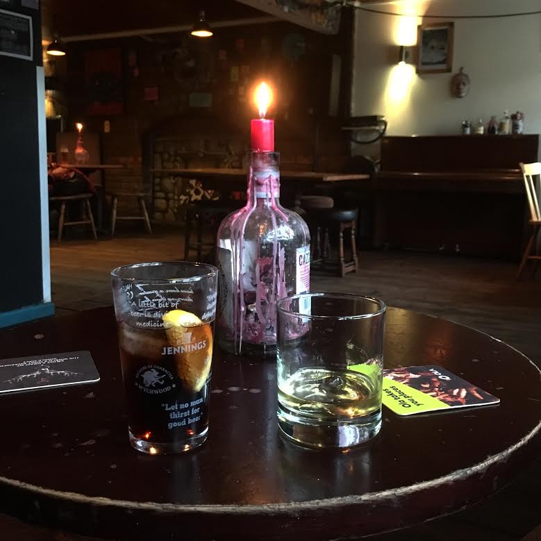 There’s artwork by local artists for sale above the fireplace, a wall covered in 12” LP records and candles burning in old whisky bottles. There are five ales on offer at the bar, which is positioned not far from some fish tanks, complete with fish. Admittedly, the toilets could do with a clean.