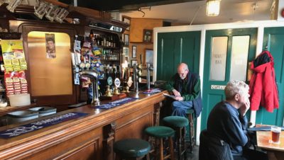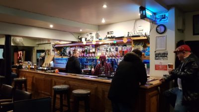 A pub that’s almost full on a weekday afternoon is unexpected, but welcome. The punk music hindered the chance of quiet conversation, instead buying a drink required almost shouting an order at the bar maid. “Ice and slice?” She asks, “Cash unless it’s under a fiver!”