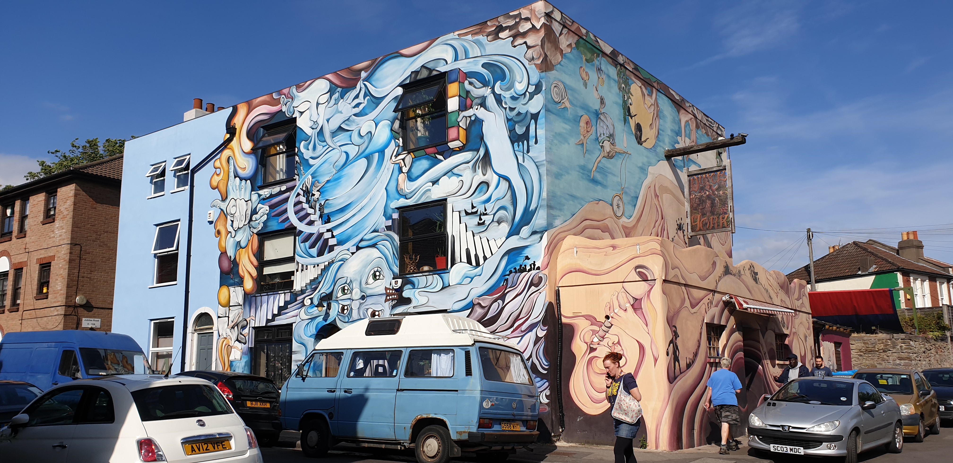 Quaint terraced houses line Jubilee Road and its nearby streets. That is, until the Duke of York. An explosion of colour and walls covered in art, depicting a surreal ocean of sorts.