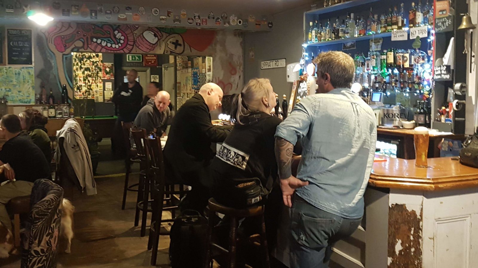 “Hello lovely, how are you?” A man greets a woman coming up to the bar, just as another local enters with a couple of dogs, who do a quick tour of the place before settling underfoot.