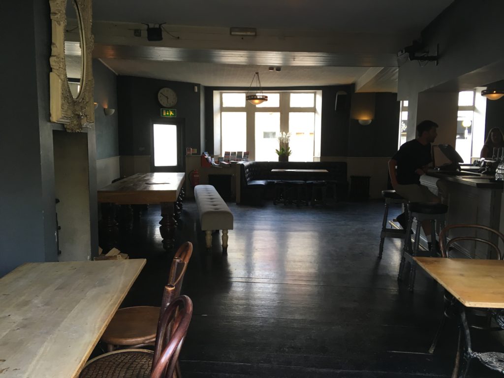 The barman polishes glasses as he waits for custom, standing behind the extremely well-stocked bar. Local is the order of the day on the hand pumps, which offer Dawkins Ales’ Bristol Best, brewed in Easton, Butcome’s Gold from Wrington, and Golden Bolt by Trowbridge-based Box Steam Brewery, among others.