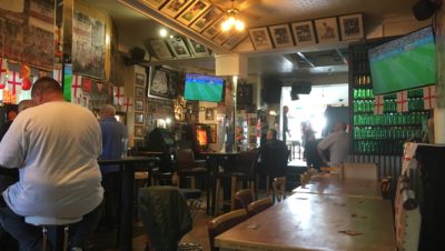 By 6pm, it’s already standing room only outside, as groups gather to enjoy a a post-work cider or two in the sun. Anyone thinking they could miss the World Cup action is sorely mistaken, as screens are up on the top deck, ready to show the match for viewers on the dockside.