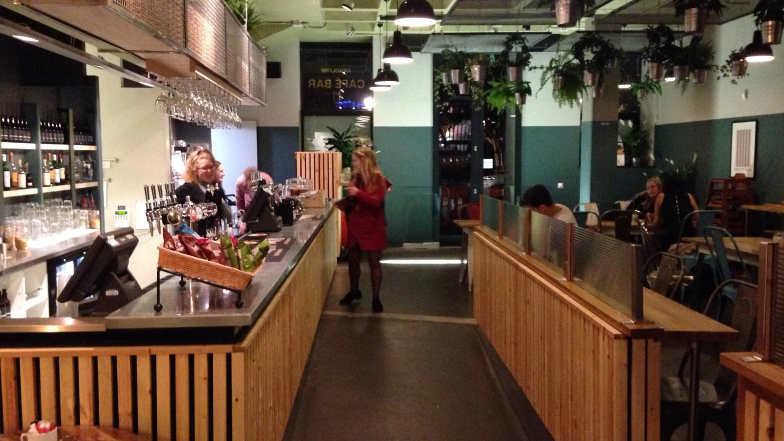 “Oh, hello!” one new arrival in a white and black checked coat shouted excitedly as she surprised her friend with a big bunch of flowers. Balearic beats played on the stereo while she eyed up the bar.